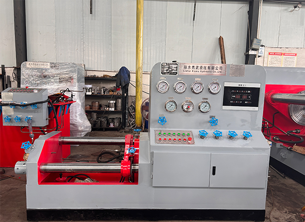 ● 此机是采用水平式油缸直接驱动工作台来顶紧阀门,实现爪抱测试机不可测试的阀门,顶紧可靠、保证了各种不同通经的焊接式阀门测试